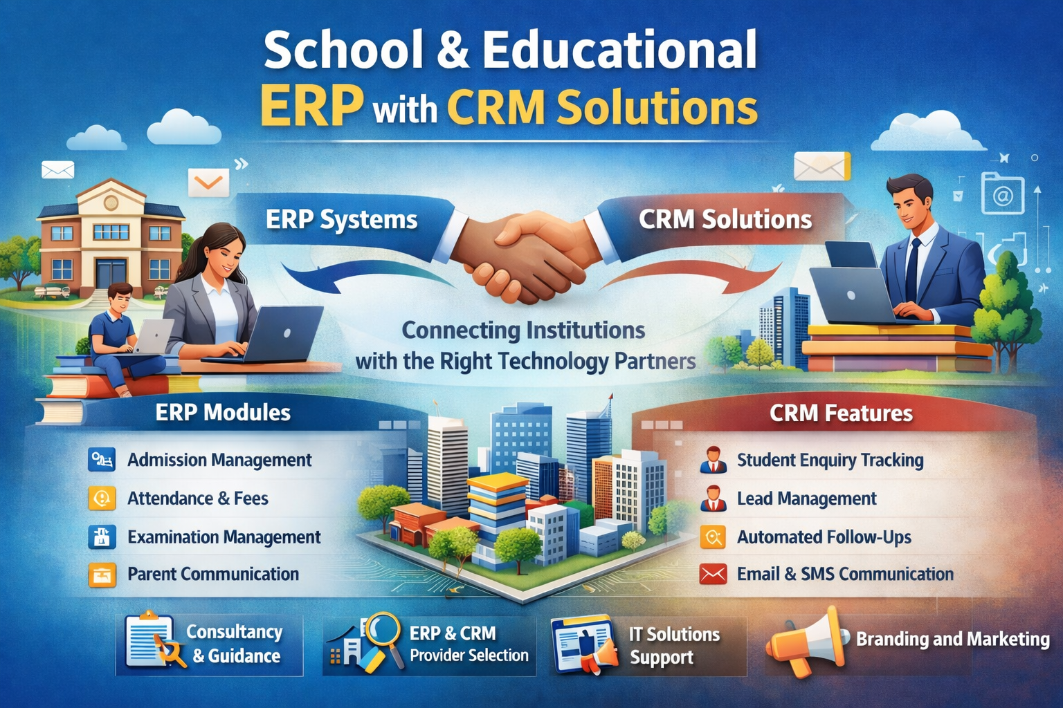 Beyond ERP and CRM consultancy, SalesCrewz also helps educational institutions connect with the right IT companies and digital service providers for complete technology and marketing support.